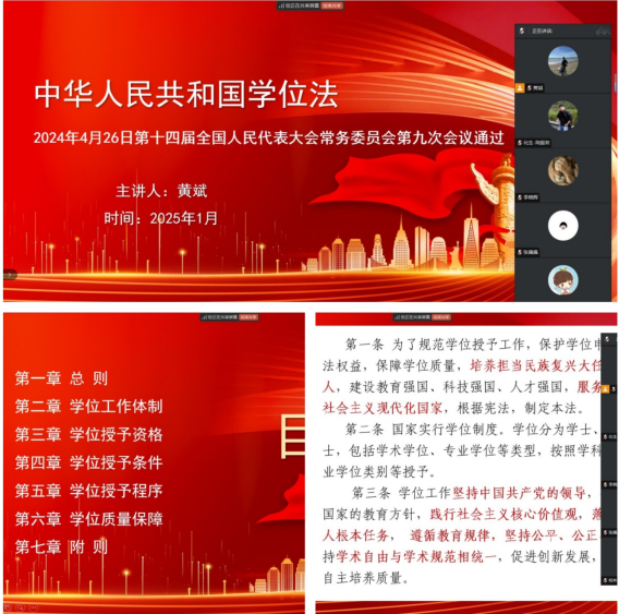 特别组织了以各科室为学习小组的全员覆盖学习模式,深入学习《学位法》。