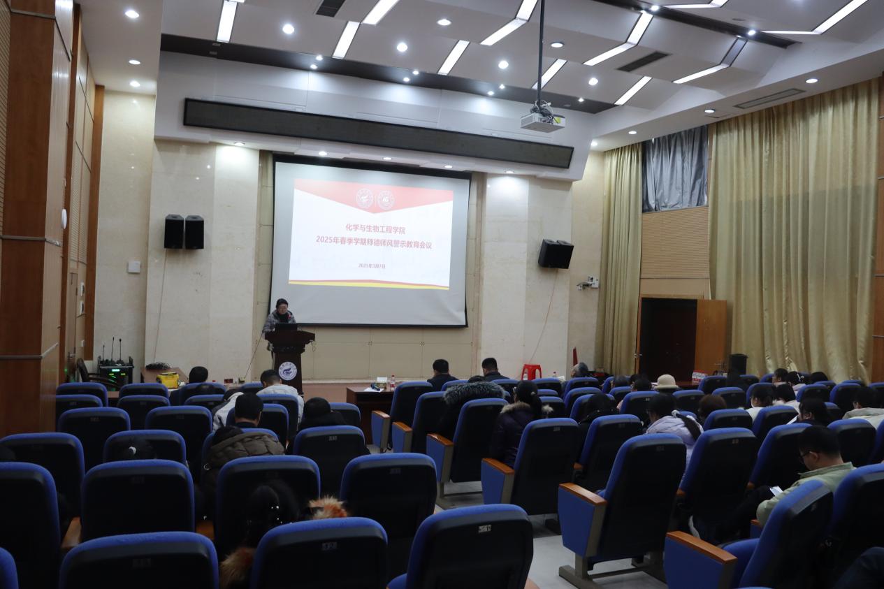 3月7日上午,化学与生物工程学院在雁山校区12栋萃华楼报告厅召开 2025 年春季学期师德师风警示教育会议,学院全体教职工参会。会议由学院副院长李霞主持。