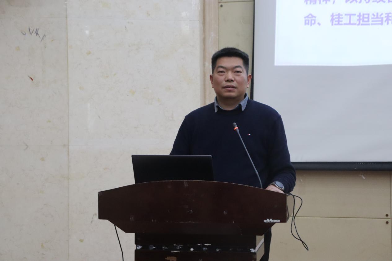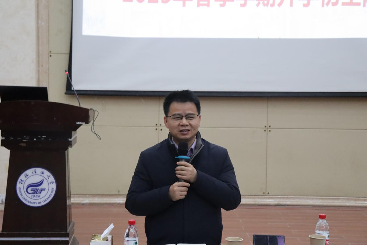 在雁山校区萃华楼报告厅召开2025年春季学期全院教职工大会,学院全体教职工参加。会议由学院院长匡小军主持。