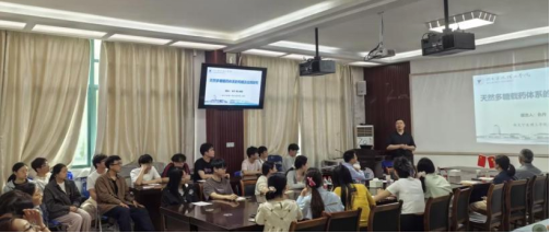 仇丹教授从生物大分子材料的结构特性切入,围绕淀粉、蛋白质、纤维素、壳聚糖、聚乳酸等生物质材料的结构调控及在食品、医药、饲料、可降解材料等领域的应用开展讲解,为在场师生做了详细的讲解。仇丹教授强调天然多糖载药体系应用前景广阔,在农业领域,天然多糖载药体系为农药的精准递送提供了创新解决方案。在医药领域,天然多糖载药体系在结肠靶向药物递送方面展现出巨大潜力。