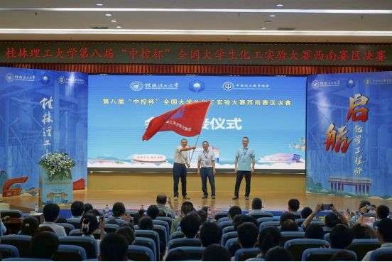 大赛闭幕式由重庆大学化学化工学院,本次比赛裁判长董立春教授主持。西南石油大学卿大咏老师对大赛做了技术点评,指出比赛中存在的问题,同时鼓励学生借助参赛机会,互相学习,共同进步。全国大学生化工实验大赛西南赛区组委会秘书长、四川大学化学工程学院副院长唐盛伟教授在总结发言中向取得优异成绩的参赛选手和参赛单位表示热烈的祝贺,希望各高校能通过全国大学生化工实验大赛西南赛区竞赛这个平台进行深入广泛的交流学习。闭幕式上还进行了会旗交接仪式,下一届西南赛区决赛将由四川轻化工大学举办。