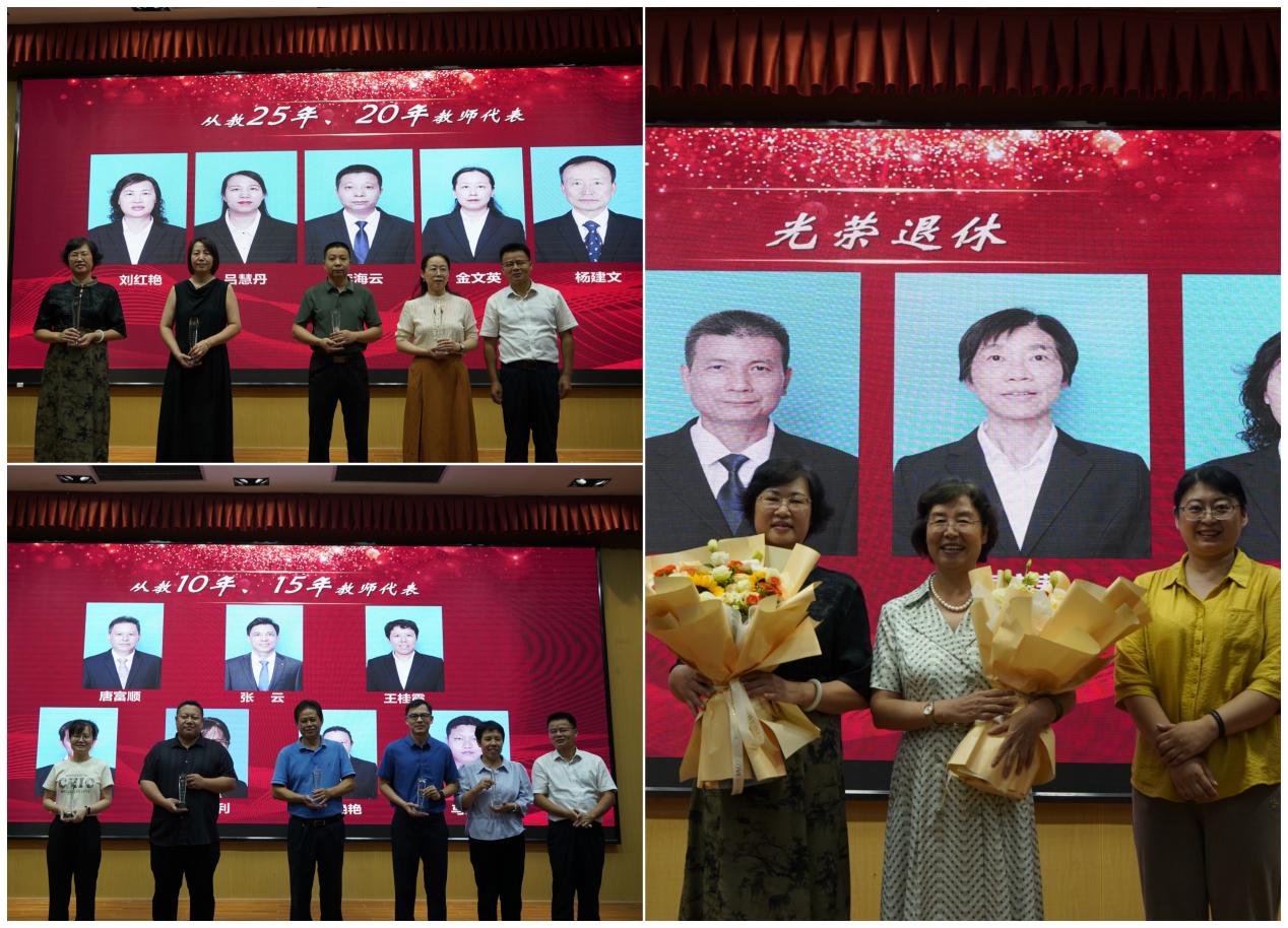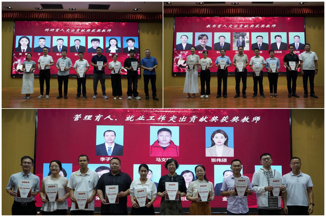 随后,学院院长匡小军宣读了《关于学院表彰“从教二十五年、二十年、十五年、十年教师”及教书育人、科研育人、管理育人、就业工作突出贡献奖的决定》并举行了表彰仪式,台下掌声雷动,这既是对获奖者的祝贺,也是对全体教师默默奉献的礼赞。获奖教师代表余彩莉在发言中分享了自己从教多年的心得与感悟,表示将始终坚守立德树人初心,号召全体老师以教育家精神为指引,不断探索教育教学改革,当好学生成长的引路人。