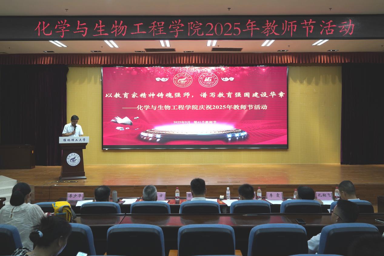 9月10日下午在学校雁山校区图书馆报告厅开展以“以教育家精神铸魂强师,谱写教育强国建设华章”为主题的教师节庆祝活动。学院全体领导班子成员、全院教职员工和学生代表共同参加了此次活动。活动由学院党委副书记李少华主持。