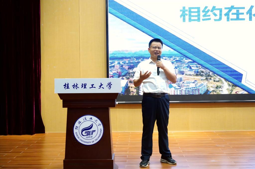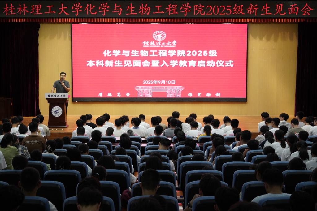 雁山校区图书馆报告厅举办了2025级本科生新生见面会。学院党委书记彭代江,院长匡小军及学院其他党政领导,学院教研室主任,2025级新生班主任、新生辅导员及全体2025级新生参加本次见面会。本次见面会由学院党委副书记、纪委书记李少华主持。