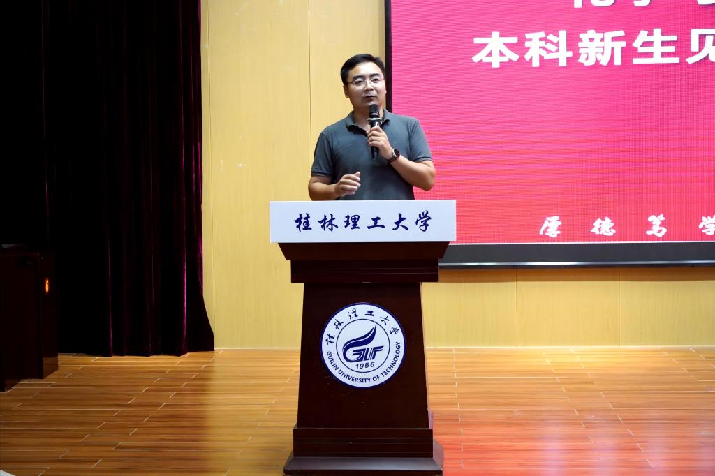 在会议中,院长匡小军发表了以“相约在化生,梦想与成功”为主题的授课。他鼓励新生展望未来,敢于创新,在新的起点树立新目标,开启崭新的人生。用一系列数据和典型事例介绍了化生学院的发展历史、学科建设、平台建设的情况;聚焦科研团队、实验设备、学术竞赛等方面讲述了化生学院的科研实力;结合今年隆重的9·3阅兵,他寄语同学们要为维护世界和平贡献力量,助力提升国家军事、科技等综合国力,在化生学院实现梦想,努力成为新时代的优秀青年。