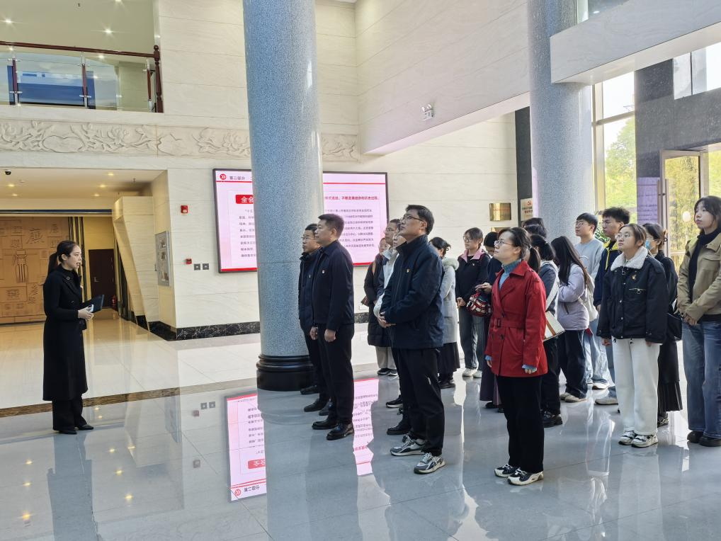 活动伊始,在基地讲解员的引导下,全体人员依次参观了清廉序厅、广西桂林古代廉政文化、党的反腐败历程、时代强音、案例警示教育等室内展厅。在古代廉政文化展厅,大家驻足观看桂林本地先贤的清廉事迹,感悟传统廉洁文化的深厚底蕴;在党的反腐败历程展厅,通过珍贵的历史资料和详实的图文介绍,系统了解了中国共产党自成立以来的反腐败工作发展脉络;在案例警示教育展厅,一个个触目惊心的腐败案例、一段段发人深省的忏悔视频,让在场人员深刻认识到腐败行为的严重危害。最后,全体人员在党旗前,由学院党委书记彭代江同志领誓,重温了入党誓词,铮铮誓言进一步坚定了大家坚守初心使命、永葆廉洁本色的信念。
