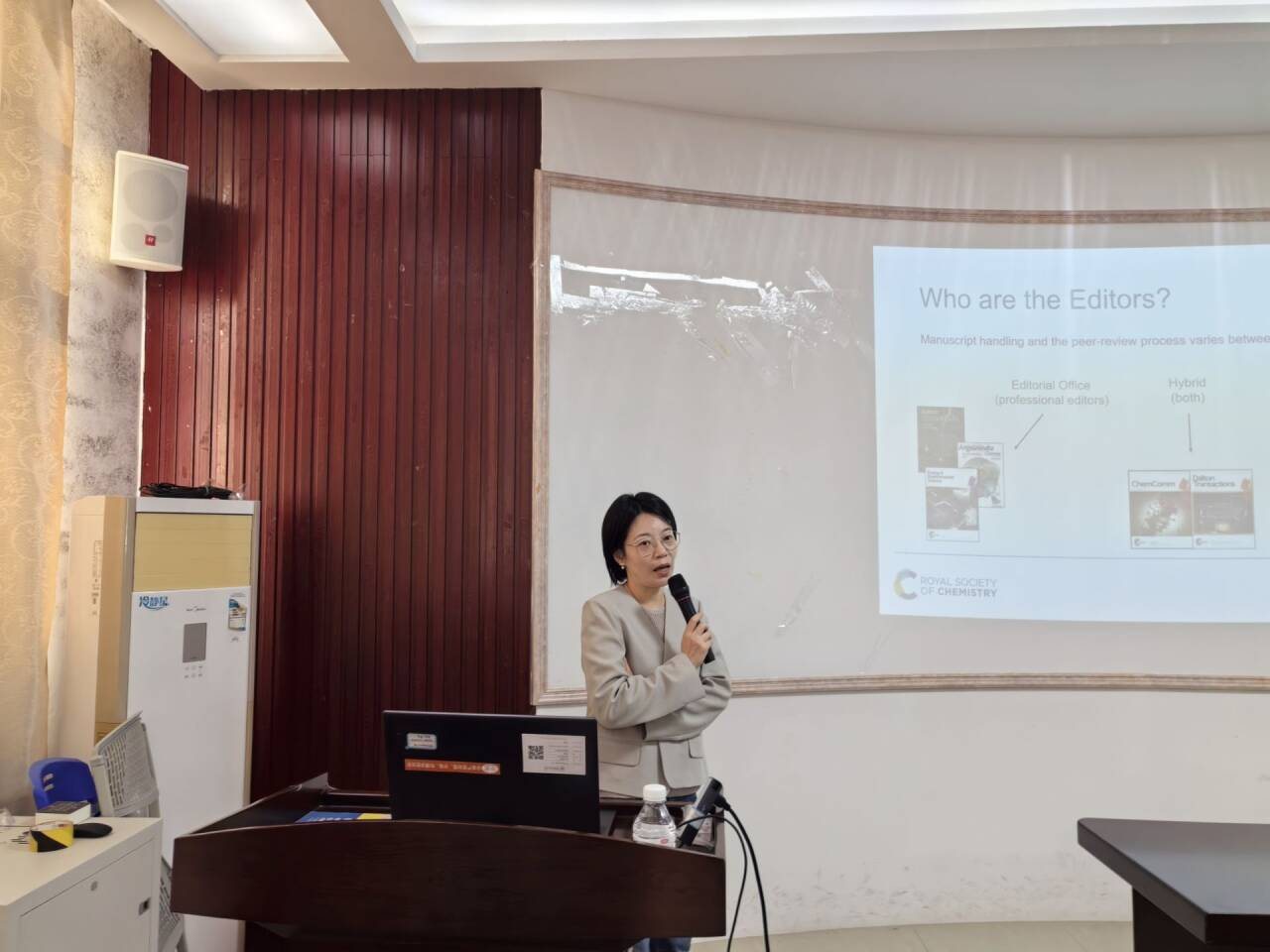 展了题为《国皇家化学会期刊与出版——以Chemistry Frontiers 系列期刊为例》的专题报告。报告会由黄斌教授主持,近百名师生到场参加。