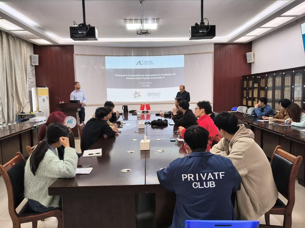 导航痕迹 当前位置: 主页 >> 新闻资讯 >> 工口漫画新闻 >> 正文 学院成功举办“化学与AI策略从头设计抗菌肽短杆菌肽S”学术讲座 作者:马文硕 发布日期:2026-03-26 浏览次数: 3月25日上午,由工口漫画 主办的学术讲座在雁山校区12217会议室顺利举行。来自澳大利亚阿德莱德大学的John Kalyvas博士与王亦非博士应邀作了题为“化学与AI策略从头设计抗菌肽短杆菌肽S”的精彩报告。学院相关专业师生到场聆听,讲座由学院喻敬贤教授主持。 讲座伊始,王亦非博士首先介绍了当前全球公共卫生领域面临的严峻挑战——抗生素耐药性。他指出,多药耐药的“ESKAPE”病原体正严重削弱现有疗法的有效性,对常规医疗应用构成重大威胁。在此背景下,研究团队聚焦于环状抗菌肽短杆菌肽S这一具有强效抗菌活性但受限于溶血毒性的经典分子,探索其向更安全抗生素骨架转化的可行路径。John Kalyvas博士围绕环状肽及肽拟体的设计合成展开深入讲解。他介绍了研究团队在开发针对多药耐药细菌感染的新型抗生素方面的系列工作,重点展示了通过构象受限的宏环肽工程克服传统抗生素局限性的创新策略。 在互动交流环节,与会师生围绕光控抗菌肽的响应机制、机器学习模型的特征选择策略、环状肽的合成挑战等热点问题与两位主讲人展开了热烈讨论。两位博士结合自身研究经验,逐一进行了细致解答,现场学术氛围浓厚。 讲座现场 (一审:马文硕;二审:喻敬贤;三审:潘宏程) 上一条:学校党委常委、副校长钱凯莅临工口漫画 调研指导工作 下一条:学校党委常委、罗盛锋副校长带队到工口漫画 开展实验室安全检查