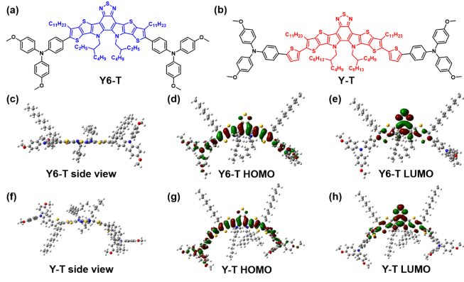 图1 HTM材料Y6-T和Y-T的分子结构以及理论计算的分子前沿轨道