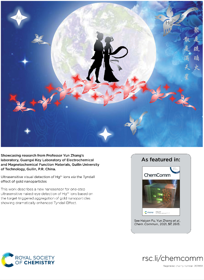 相关成果以“Ultrasensitive visual detection of Hg2+ions via the Tyndall effect of gold nanoparticles”为题发表在化学领域国际知名期刊Chemical Communication(自然指数收录的82种全球自然科学类顶级期刊之一;影响因子5.996),并被选为当期的OutsideBack Cover(外封底;以中国古代传说“牛郎织女鹊桥相会”为创意)。该项研究得到国家自然科学基金面上项目、广西杰出青年基金、中央引导地方科技发展资金、广西重点研发计划等项目资助。工口漫画