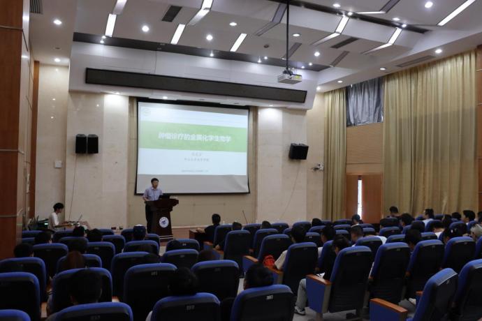 95日下午,中山大学毛宗万教授应邀在雁山校区萃华楼报告厅做了题为《肿瘤金属诊疗及其化学生物学》的专题讲座,讲座由学院院长匡小军教授主持,全院100余名师生参加了报告会。