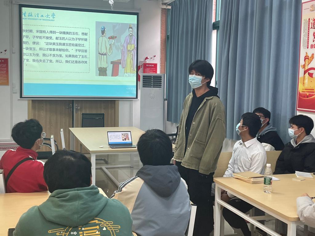随后,各学生代表依次分享近期阅读的廉洁故事,并畅谈学习感受。学生们生动讲述郑板桥、陈毅、孔繁森、吴波以及老一辈共产党人的廉洁故事,在一个个典型人物的清正廉洁事例中引导大家以榜样力量激励自己,主动担当,做一名廉洁自律的新时代大学生。