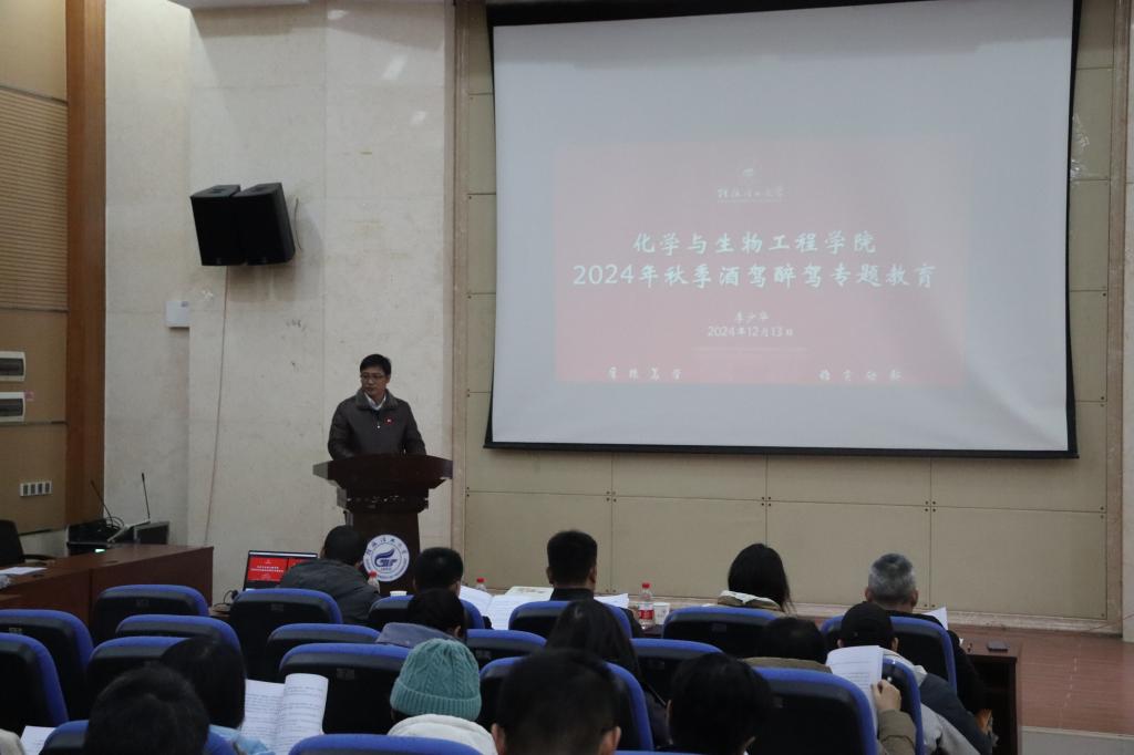 为巩固阶段活动成果,持续常态化开展酒驾醉驾教育,保持严惩酒驾醉驾的高压态势。12月13日,学院在雁山校区萃华楼学术报告厅开展2024年秋季学期酒驾醉驾专题教育。学院党政领导及全体教职员工参加了教育活动。专题教育由学院党委副书记、纪委书记李少华主持。