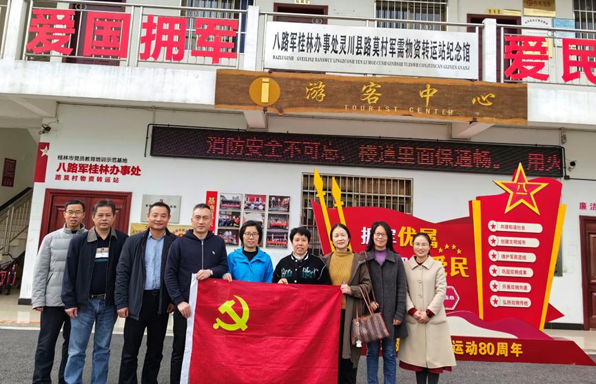 在桂林市北郊,我党抗日战争期间设在灵川县定江镇的八路军桂林办事处路莫村物资转运站,作为八路军桂林办事处旧址的重要组成部分发挥过极为显著的历史作用,为中华民族的解放事业做出过重大贡献,具有较高的历史地位和巨大的社会影响,蕴藏着丰富的爱国主义教育资源。纪念馆由原位于村中并保存下来的救亡室、电台室、周恩来传达中共“六届六中全会”内容旧址(龙王庙旧址)、胡志明旧居、李克农及家人旧居、军需物资仓库和招待所等组成。在参观学习过程中,支部一行仔细观看馆内历史图片和文物,近距离地感受革命前辈的艰苦奋斗、崇高理想、坚定信念和优良作风。党员们被革命先烈为新中国的解放事业不怕牺牲、勇于斗争的大无畏精神所感染,纷纷表示要牢记党的初心和使命,充分发挥共产党员的先锋模范作用。