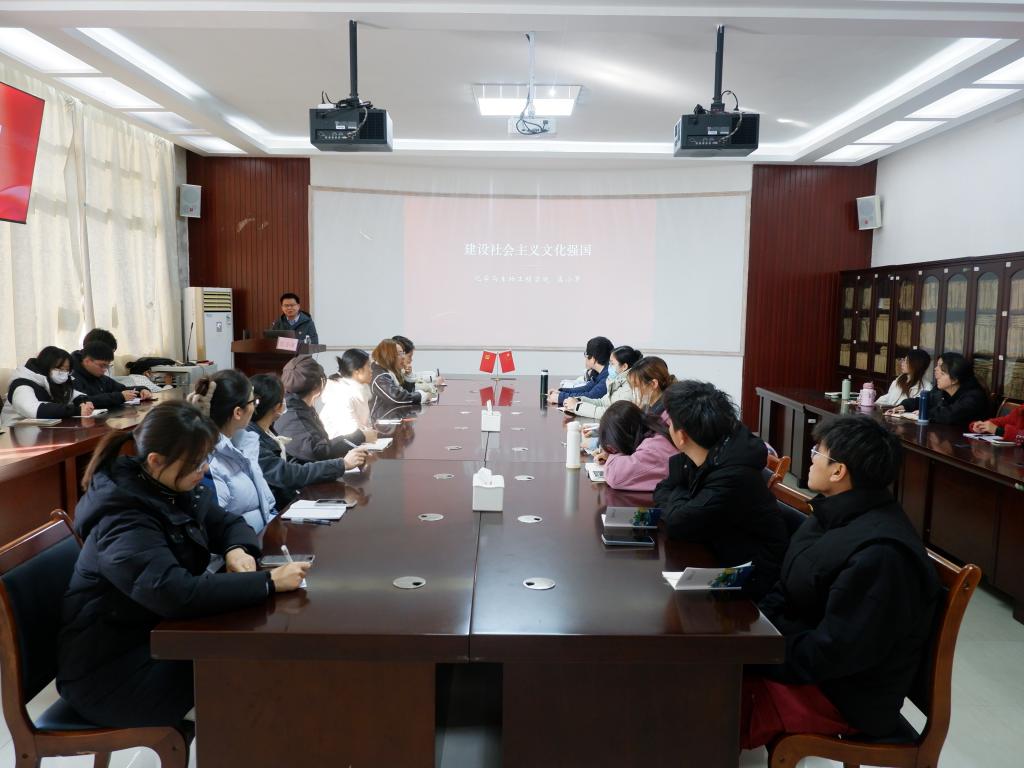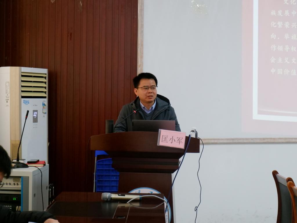 党委于萃华楼12217开展“建设社会主义文化强国”主题党课,本次党课由学院党委副书记、院长匡小军同志主讲,研究生各党支部党员代表参加。
