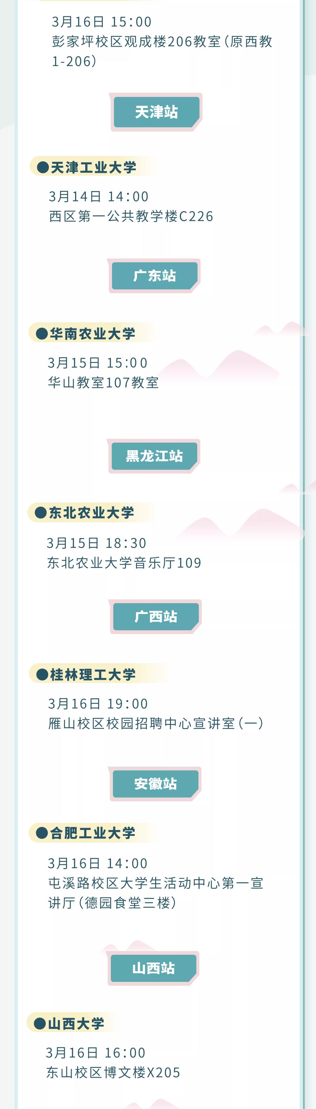导航痕迹 当前位置: 主页 >> 招生就业 >> 招聘信息 >> 正文 【招聘信息】养生堂·农夫山泉·万泰生物专场招聘会 作者:朱皓 发布日期:2023-03-13 浏览次数: 农夫山泉股份有限公司成立于1996年,于2020年9月8日港交所上市,发展至今已有2万多名员工,在全国拥有十大水源地、32个销售大区。在2012年至2019年间,农夫山泉连续八年保持中国包装饮用水市场占有率第一,也是在中国市场上同时具备规模性、成长性和盈利能力的软饮料龙头企业。 公司将于2023年3月16日19:00--20:00在 雁山校区校园招聘中心宣讲室(一)进行招聘。 上一条:学院成功举办广东广业云硫矿业有限公司专场招聘会 下一条:【招聘信息】深圳市飞荣达科技股份有限公司