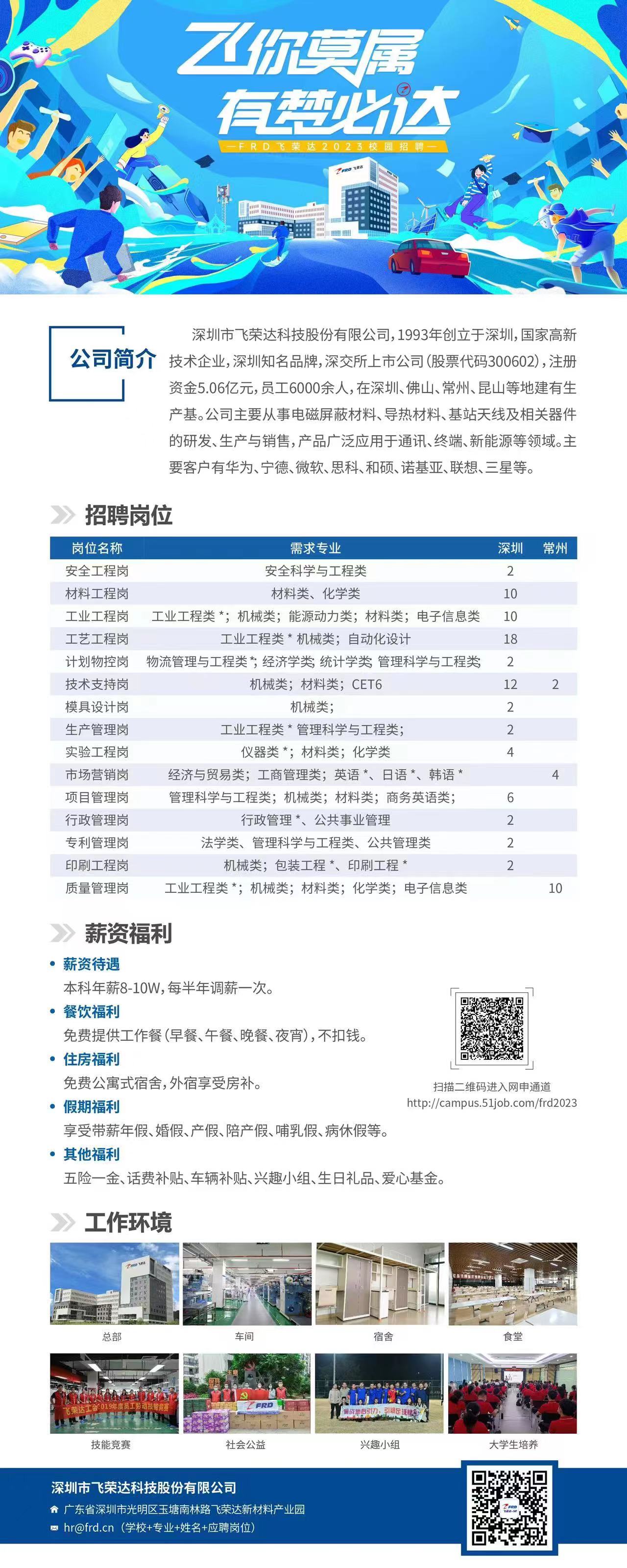 导航痕迹 当前位置: 主页 >> 招生就业 >> 招聘信息 >> 正文 【招聘信息】深圳市飞荣达科技股份有限公司 作者:朱皓 发布日期:2023-03-10 浏览次数: 深圳市飞荣达科技股份有限公司将于2023年3月16日10:00—12:00在雁山校区校园招聘中心宣讲室(一)进行招聘,详情如下: 上一条:【招聘信息】养生堂·农夫山泉·万泰生物专场招聘会 下一条:日东精密回路技术(深圳)有限公司来工口漫画 开展专场宣讲会