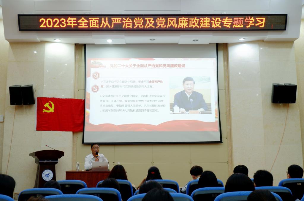为了贯彻党的二十大全面从严治党部署,坚定不移推进党风廉政建设,加强对毕业生党员的党性和廉政教育,学院5月24日下午在萃华楼报告厅组织开展全面从严治党及党风廉政建设专题党课。本次专题党课学院党委书记李少华主讲,学院全体毕业生党员参加。